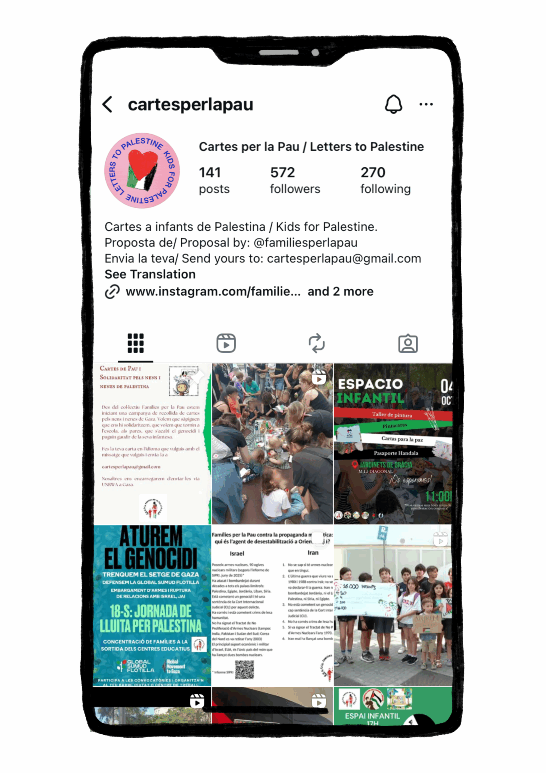 Una iniciativa que anima a enviar cartes als infants de Palestina. L’objectiu és transmetre afecte i suport directe, esperant que els nens i nenes de Palestina les puguin llegir.
