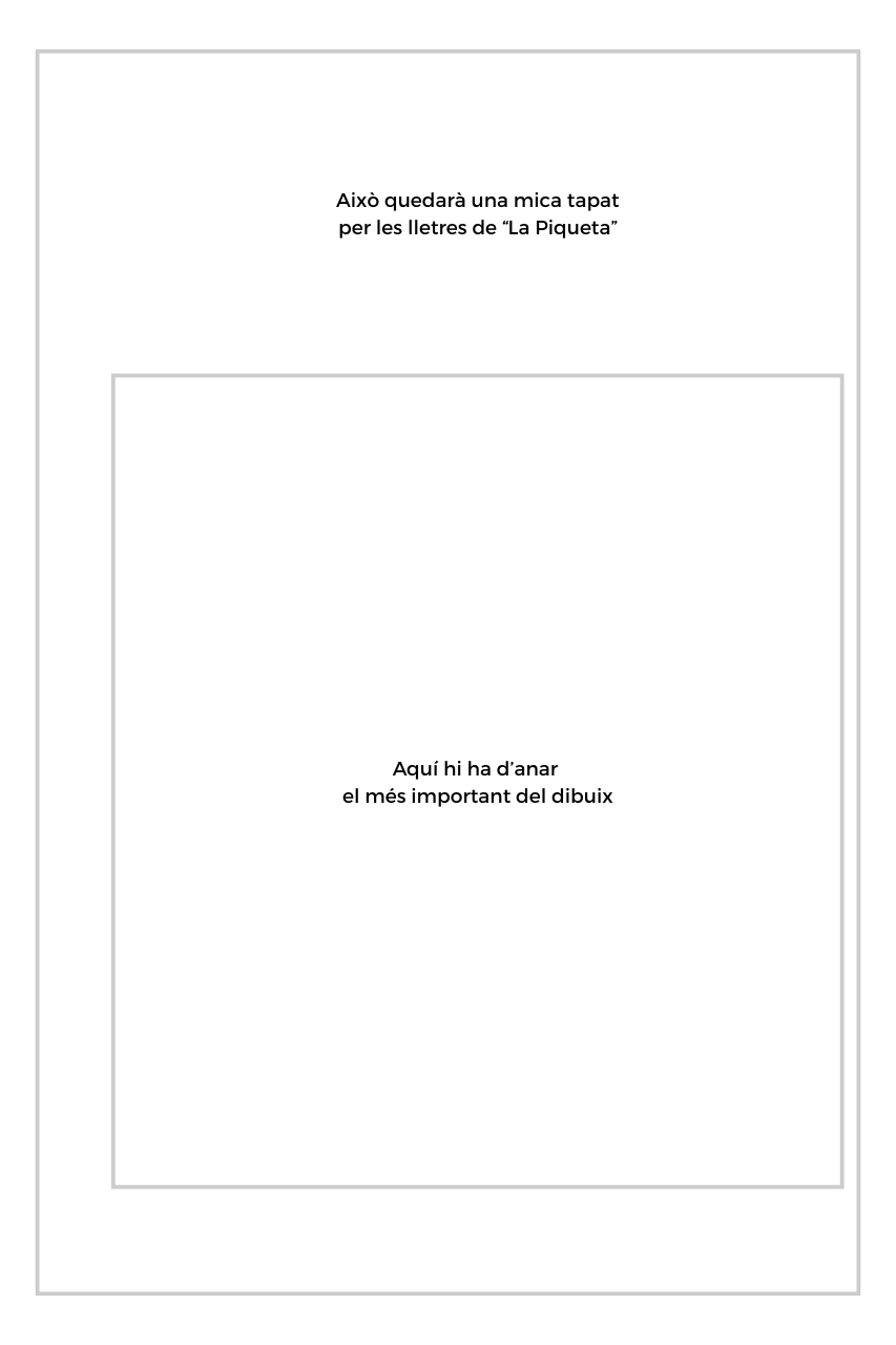 Format: El dibuix ha de ser en VERTICAL, en format A4 o equivalent. Us adjuntem una plantilla perquè veieu com hauria d’estar composta la imatge (aproximadament, no patiu, mentre sigui en vertical, tot bé!).